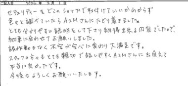 とても分かりやすい説明をして下さり納得出来る内容でしたので、納車に合わせてお願いしました。